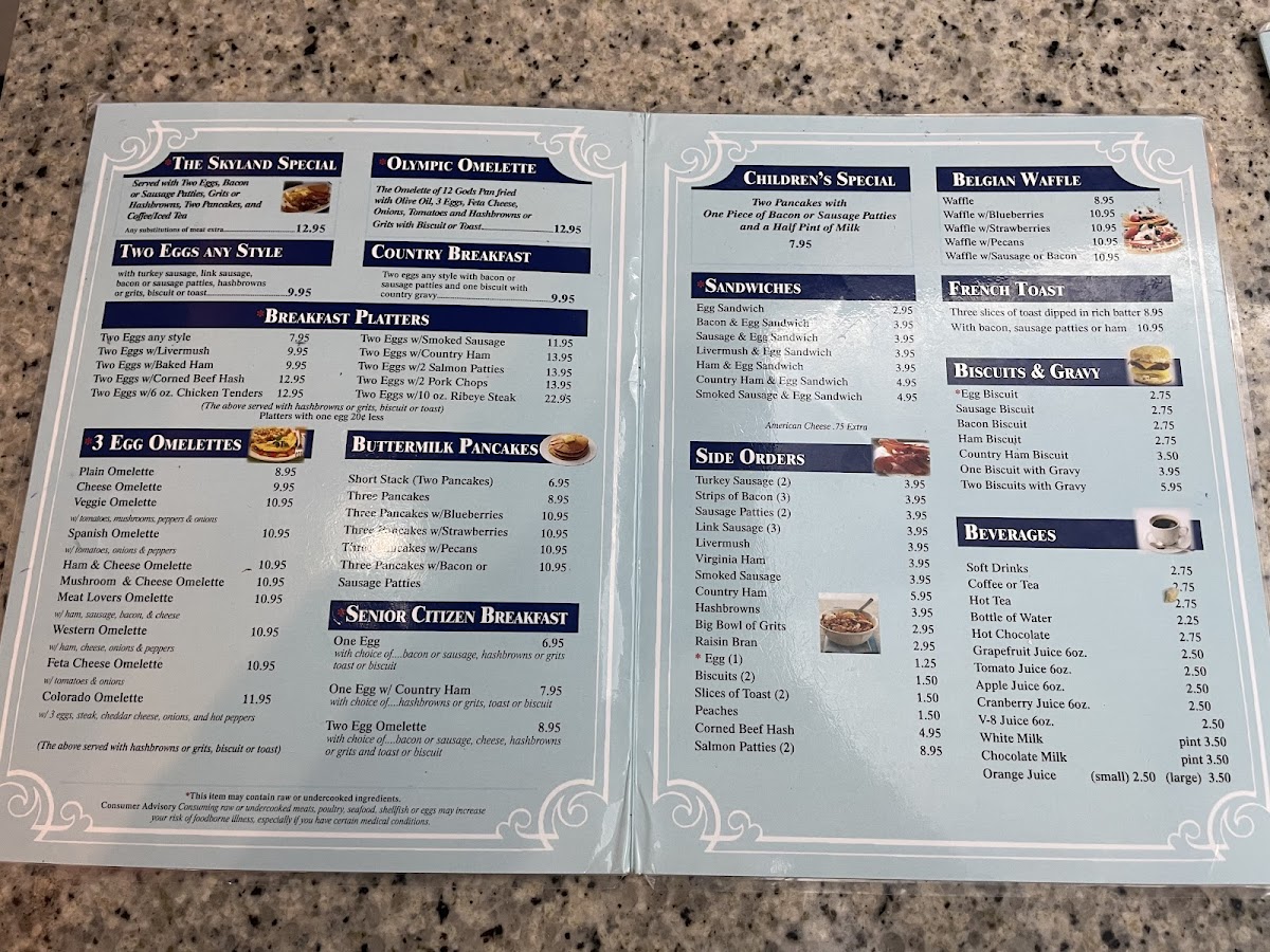 The menu at Skyland Family Restaurant offers a straightforward, comforting selection that suits a variety of moments throughout the day, especially mornings and lunch hours. Here you'll find classic breakfast favorites served all day, alongside simple yet satisfying lunch options. The dishes tend to be hearty and familiar, perfect for those seeking a relaxed meal in a friendly, casual setting.